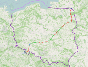 National road 8 - The national road, 804 km in length, running through Poland from the Czech border in Kudowa Zdrój to the border with Lithuania in Budzisko. Is the Polish section of the international route E67 and a fragment of the Via Baltica. Runs across five regions: Lower Silesia, Greater Poland, Lodz, Masovian and Podlaskie. It is the longest national road in Poland.