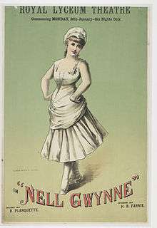 Nell Gwynne is a three-act comic opera composed by Robert Planquette, with a libretto by H. B. Farnie. The libretto is based on the play Rochester by William Thomas Moncrieff. The piece was a rare instance of an opera by a French composer being produced first in London. Farnie had written an earlier libretto on the same subject, with the same name, for composer Alfred Cellier, which was produced at the Prince's Theatre in Manchester in 1876.[1]
