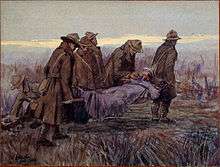 New Zealand's National Collection of War Art encompasses the work of artists who were working on commission for the Government as "official war artists." while others created artworks for their own reasons.[7] As documentary material, the collection of art is in the safe care of Archives New Zealand and located in the Wellington National Office, Thorndon, New Zealand. Archives New Zealand loans items from the collection on application from institutions, such as art galleries and museums, providing specific criteria is met. Most of the collection has been digitised, about 1500 works, and this is available to view online.[8]