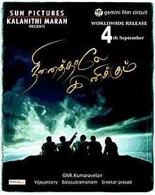 Ninaithale Inikkum (Sweet Memories) is a 2009 Indian Tamil-language drama film directed by G. N. R. Kumaravelan. It stars Prithviraj Sukumaran, Shakthi Vasudevan, Priyamani, Karthik Kumar and Anuja Iyer in the lead roles while K. Bhagyaraj and Manobala play supporting roles. The score was composed by Vijay Antony.[3]