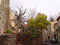 From the 14th century onwards, the center of the village spread to the west of the original center (quartier de la Villette) around a new square – the Place du Griffe. In this square, in the center of a fountain, there is a statue of Marianne which is more mythological than republican. She is the Greek-Roman goddess Artemis-Diana or Belissena, her counterpart in Celt Iberian cosmos of divinities.[6] She isn't wearing phrygian cap, but a star on her forehead, suggesting the guiding light to lead people from the darkness of ignorance.