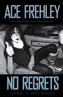 No Regrets is a book co-written by former Kiss lead guitarist Ace Frehley, Joe Layden and John Ostrosky. The book covers the period from the early days of his life, his tenure with Kiss, solo career up to today. The book also contains various pictures from Frehley's life. The design was done by Joe O'Meara. Frehley noted that he is in process of writing a follow-up to No Regrets.[1]