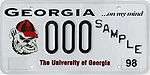 | UF | University of Florida | UF1 to UF3300 | Introduced by February 7, 2008 on GEORGIA.gov base. | Dark blue serial and dark blue state name. Sponsor is Atlanta Gator Club. | |