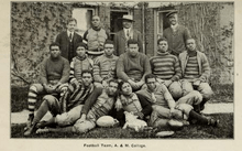 In 1901, the team played its first game, losing to Livingstone College. The team played only one game during the 1901 season and did not field another team until 1906.[2] In the program's early years, the team would sporadically field teams, having periods between 1907–1911; 1913; and 1917 where there was no team. Due to the outbreak of World War I, the school did not field a team, but resumed play once again in 1919 competing against neighboring Bennett College.[3] It wasn't until 1923, that A&T's first coach of record, L.P. Byarm, would come along to lead the team.[4]