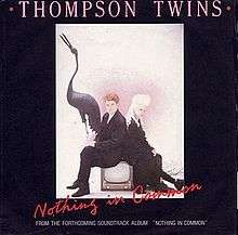 "Nothing In Common" is a 1986 song by the British band the Thompson Twins. It was recorded for the soundtrack to the movie Nothing In Common and released as a single in July 1986. It was written by bandmembers Alannah Currie and Tom Bailey and was the first material to be released by the band after they had become a duo. The single peaked at #54 in the U.S. on the Billboard Hot 100 chart.[1] The single was not released in the band's native UK.