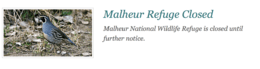 - ↑ Peacher, Amanda (March 2, 2016). "Malheur Refuge Manager: 'It's 1 Big Mess'". Portland, OR: Oregon Public Broadcasting. Retrieved March 13, 2016.
