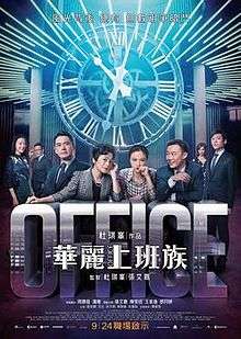 Office is a 2015 Hong Kong-Chinese musical comedy-drama film produced and directed by Johnnie To and starring Chow Yun-fat, Sylvia Chang, Eason Chan and Tang Wei. The film is an adaptation of the 2008 play Design for Living, which was created by and starred Chang.[2][3] Office premiered at the 2015 Toronto International Film Festival[4] and was theatrically released on 2 September 2015 in China and 24 September in Hong Kong in 3D.[5][6]