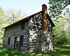 Old Settlers' Association Park and Rhodham Bonnifield House, also known as Old Settlers' Park and Bonnifield Cabin, is a nationally recognized historic district located in Fairfield, Iowa, United States. It was listed on the National Register of Historic Places in 1986.[1] The park was established in 1907 as a preserve for the grasses, flowers and animals native to this area. It was also meant to memorialize the pioneers to Jefferson County and the sentiments of "freedom and equality, hospitality, sympathy and love of fair play" that motivated them.[2] The focal point of the park is the Rhodham Bonnifield House, a log cabin built in 1838 in Round Prairie Township. It was used as a residence until 1902, and moved here when the park was established. This is the first park of its kind established in eastern Iowa.[2] The house's historic designation is attributed to its 1907 reconstruction, and not its original construction. There are few pioneer log structures in Iowa that remain in their original setting. Those that remain have been reconstructed at an another site to preserve them.