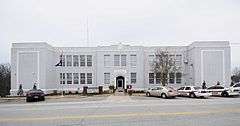 Old Woodruff High School is a historic high school building located at Woodruff, Spartanburg County, South Carolina. It was built in 1925, and is a two-story, modified “H” plan stuccoed masonry building in the Collegiate Gothic style. It consists of a three-part center section with two perpendicular wings. The building has a flat roof with parapet, Gothic arches, recessed entrances framed by pointed arches. The building housed a high school until 1953 when Woodruff High School was constructed, then used as a middle school and later an elementary school. In 1978 the City of Woodruff acquired old Woodruff High School and adapted it for use as its city hall and police headquarters.[2][3]