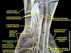The opponens pollicis is a small, triangular muscle in the hand, which functions to oppose the thumb. It is one of the three thenar muscles, lying deep to the abductor pollicis brevis and lateral to the flexor pollicis brevis.