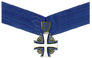 The Order of the Cross of Terra Mariana (Estonian: Maarjamaa Risti teenetemärk, sometimes translated as the Order of the Cross of St. Mary’s Land) was instituted in 1995 to honour the independence of the Estonian state by president Lennart Meri.[1] The Order of the Cross of Terra Mariana is bestowed upon the President of the Republic. Presidents of the Republic who have ceased to hold office shall keep the Order of the Cross of Terra Mariana. The Collar of the Order was used de facto as the badge of office of the President of the Republic, since the original Presidential collar, that of the Order of the National Coat of Arms was taken from Estonia to the Kremlin after the Soviet occupation of the country in 1940, where it remains to this day. However a new collar of that order was made in 2008.[2] The Order of the Cross of Terra Mariana is also given as a decoration of the highest class to foreigners who have rendered special services to the Republic of Estonia. As such it is the highest and most distinguished order granted to non-Estonian citizens.