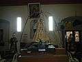 - Image of Our Lady of Salambáo in the altar of Obando Church, flanked by St Paschal to her right and St Clare to her left.