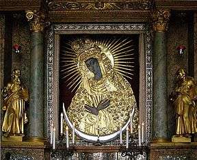 In Poland the biggest church devoted to Our Lady is the Marian Basilica in Gdańsk.[5] Other shrines of the holy icon are found in Poland (Białystok, Drogosze, Kętrzyn, Olsztyn, Skarżysko-Kamienna and Wrocław), United Kingdom (Kidderminster), United States (South River, NJ), and Australia. Copies of the painting can also be found in Church of Saint-Séverin in Paris and St. Peter's Basilica[21] in the Vatican.