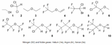 - ↑ Koblin DD, Chortkoff BS, Laster MJ, Eger EI II, Halsey MJ, Ionescu P (1994). "Polyhalogenated and perfluorinated compounds that disobey the Meyer-Overton hypothesis". Anesth Analg. 79 (6): 1043–8. doi:10.1213/00000539-199412000-00004. PMID 7978424.