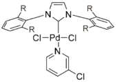 - ↑ Organ, MG; Avola, S; Dubovyk, I; Hadei, N; Kantchev, EA; O'Brien, CJ; Valente, C (2006). "A User-Friendly, All-Purpose Pd–NHC (NHC=N-Heterocyclic Carbene) Precatalyst for the Negishi Reaction: A Step Towards a Universal Cross-Coupling Catalyst". Chemistry (Weinheim an der Bergstrasse, Germany). 12 (18): 4749–55. doi:10.1002/chem.200600206. PMID 16568493.