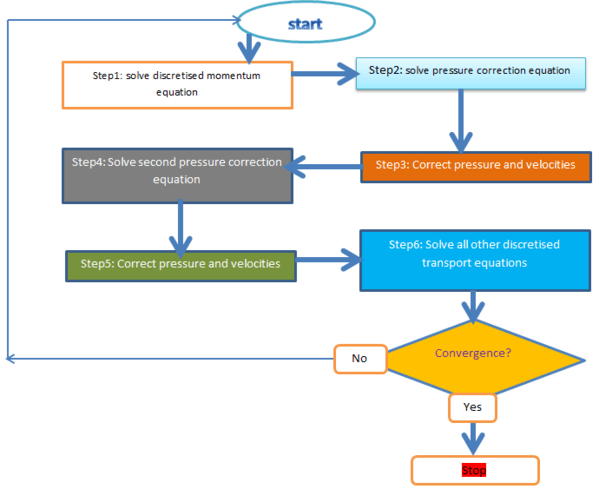 As already seen for the SIMPLE algorithm, the steps 4 and 5 can be repeated for a prescribed number of times to correct for non-orthogonality.