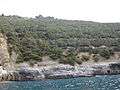 The Palmaria island with a surface area of 1.89 square kilometres (0.73 sq mi), is the largest of three islands in the Gulf of La Spezia and the Liguria region of the whole, the other two islands, Tino and Tinetto meet down a few hundred meters straight line to the south. The island has a triangular shape: the sides that face Portovenere and the Gulf of La Spezia are the most humanized and slope gently down to the level of the sea, covered by typical Mediterranean vegetation, the side that faces west, i.e. towards the open sea, is instead characterized by high cliffs overhanging the water, in which there are many caves. The sides humanized see the presence of some private homes, a restaurant (in Pozzale) and especially bathing establishments, both public and confidential employees of the Navy and Air Force. As for the western side, the most difficult to reach, are worthy of note the Blue Cave, visited by boat, and the Cave of Pigeons, which can be reached only by climbing down ropes. The latter in particular has been very important in the study of historical events in the Gulf, as have been found inside the fossilized bones of Pleistocene animals such as chamois and the snowy owl, but above all remains of human burials, testifying the presence of man at least five thousand years ago. On the island there are also many buildings of a military character and of great historical interest: the top, inaccessible as a former military area and is currently in a state of neglect, the Fort Count of Cavour (or Fort Palmaria), the battery now used as experimental environmental education center and Batteria Semaforo near the Scola Tip, the tower ironclad Umberto I and used in World War II to a military prison and renovated a few years ago and the remains of the battery Albini, scattered throughout the island, several bunkers from the Second World War and the remains of coastal artillery and antiaircraft mostly inaccessible since abandoned and submerged vegetation. Remarkable is the presence (in the south, called Pozzale) of an abandoned quarry, once used for the extraction of the precious black marble with streaks of gold portoro said. There are still remnants of cranes and hoists used for moving the blocks of marble and the walls of the houses of the miners.[1]