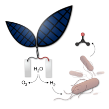 . PMID 24288075. - ↑ Torella JP, Gagliardi CJ, Chen JS, Bediako DK, Colon B, Way JC, SIlver PA, Nocera DG (February 24, 2015). "Efficient solar-to-fuels production from a hybrid microbial-water-splitting catalyst system". Proceedings of the National Academy of Sciences. 112 (8): 2337–2342. doi:10.1073/pnas.1424872112. PMID 25675518.