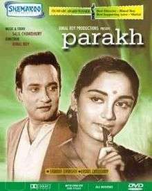 Parakh is a 1960 Hindi film, based on a story by famed music director Salil Chowdhury, that displays Bimal Roy's lighter side and is a satirical look at Indian democracy in its early years. Roy received the Filmfare Best Director Award for the film.[2] The ensemble cast was led by Sadhana and Bengali cinema actorBasanta Choudhury. The film has music by Salil Choudhury, featuring Lata Mangeshkar's hit "O Sajana Barkha Bahaar Aai".[3]