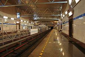 Parnas (Russian: Парна́с) is the northern terminus of the Moskovsko-Petrogradskaya Line of the Saint Petersburg Metro. It was opened on 22 December 2006 and is located between the tunnel portal and the Vyborgskoye Metro Depot. It is the northernmost subway station in Saint Petersburg and in Russia.