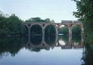 Peacock's Lock Viaduct is a stone arch bridge over the Schuylkill River near Reading, Pennsylvania, constructed by the Philadelphia and Reading Railroad between 1853 and 1856. It is named for a nearby lock on the Schuylkill Canal. The bridge is notable for its pierced spandrels, or circular openings between the arch rings and the deck. While this feature is found on some European bridges, it is extremely rare, if not completely unique, in the United States.[1]