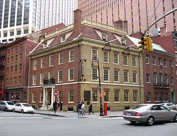 In the mid-1650s a three-story tavern near what is now 73 Pearl Street became the city's first City Hall.[1] Thomas Edison's first power plant, Pearl Street Station, was located here. The IRT Third Avenue elevated railway also ran above Pearl Street until 1950. New York Telephone put up a large administrative building at 375 Pearl on the north side of the Street, east of the Brooklyn Bridge, in the 1970s.