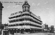 The hotel was officially opened on 27 June 1911.[5][6][7] It was under the control of Major Wilson assisted by Ensign John McLean.[8] It was popular with travellers to Brisbane due to its convenient location to the central railway station. The building also was the Queensland headquarters for the Social Wing of the Salvation Army.[3]