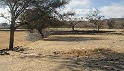 The site main structure is unique in Mesoamerica; it is considered the first constructive stage, combining a large rectangular stepped structure with “sunken patios” (pool) and round structures built on top. The structure basement is stepped to adjust to the irregular terrains it was built on.[4]
