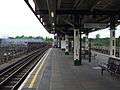 - Island platform looking east, with former GWR tracks used mostly by freight on the extreme left.