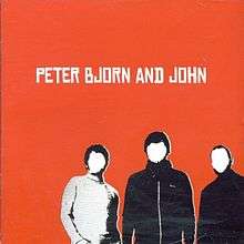 Peter Bjorn and John is the first album by Swedish indie-pop band Peter Bjorn and John. Its style takes influences from baroque-pop, post-punk and soul ('From Now On'), and it is colloquially referred to by the band as 'The Red Album'. Self-titled, it is the only album by the band not to follow their tradition of naming albums with two words, the first with two syllables and the last with one. However, it does adhere to their rule of always having three of something, if not the band members themselves, on the front cover. The Wichita Recordings re-release included five bonus tracks from the album's four singles; 'Firing Blanks' & 'Don't Be Skew' from the 'I Don't Know What I Want Us To Do' single, 'Le Crique' from the 'People They Know' single, and 'The Fan' and 'Saturday Night At The Parties' from the '100 M Of Hurdles' EP.[2] Session musicians appear on some tracks, as the band originally intended to be a quartet. The album and its singles feature artwork designed by Eric Segol.