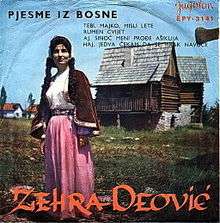 Pjesme iz Bosne (English: Songs from Bosnia) is the debut release by Bosnian folk singer Zehra Deović.[1] It was released 11 December 1962 and re-released with an alternate cover in 1964 through the label Jugoton.[2]