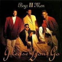 "Please Don't Go" is a song by Boyz II Men from their album Cooleyhighharmony. It reached #49 on the Billboard Hot 100 and #38 on the Hot 100 Airplay on May 2, 1992, and #46 on the Hot 100 Singles Sales on June 6, 1992 and was a Top 10 R&B hit at #8.