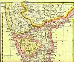 A Wodeyar dynasty genealogy, the Maisüru Mahardjara Vamsävali of Tirumalarya, was composed in Kannada during the period 1710–1715, and was claimed to be based on all the then-extant inscriptions in the region.[2] Another genealogy, Kalale Doregala Vamgdvati, of the Delvoys, the near-hereditary chief ministers of Mysore, was composed around the turn of the 19th century.[2] However, neither manuscript provides information about administration, economy or military capability.[2] The ruling dynasty's origins, especially as expounded in later palace genealogies, are also of doubtful accuracy; this is, in part, because the Wodeyars, who were reinstated by the British on the Mysore gaddi in 1799, to preside over a fragile sovereignty,[3] "obsessively" attempted to demonstrate their "unbroken" royal lineage,[4] to bolster their then uncertain status.[5]