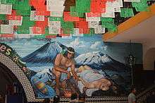 "Popocatépetl and Iztaccíhuatl" refers to the volcanoes Popocatépetl ("the Smoking Mountain") and Iztaccíhuatl ("white woman" in Nahuatl, sometimes called the Mujer Dormida "sleeping woman" in Spanish)[1] which overlook the Valley of Mexico and the various myths explaining their existence. The most common variety relates the Nahua romance of the princess Iztaccíhuatl and the warrior Popocatépetl. This tale is recorded in several different versions.
