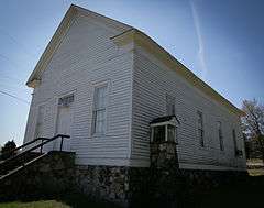 The Powhatan Methodist Church is a historic church on Arkansas Highway 25 in Powhatan, Arkansas. It is a single-story wood frame structure with a gable roof and a stone foundation. The main (only) entrance is in the east facade, and consists of a double door topped by a transom window. Flanking bays are filled with sash windows, identical to those found on the other facades. The interior has retained a number of original furnishings, including its pews and a pump organ. The church was built in 1872, probably replacing an earlier log structure used by its congregation, which was founded in 1854.[2]