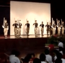 A deduction of 5 points will be made for every cadet under the minimum squad size of 12, 2 points for boundary violations during the performance, 2 and 3 points respectively for slipping or dropping of rifles, and 1 point for every second the performance fails to meet the criteria of being restricted within 4 to 6 minutes in length.