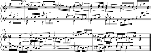 Tovey[4] asks us to "note Bach's favourite device of cumulative repetition in the tonic" which contributes to "the sonorous vigour of the last eight bars."