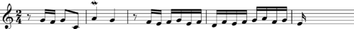 The entire passage of bars 5 to 13 is then repeated, with some small alterations, a perfect fourth higher in bars 20 to28: