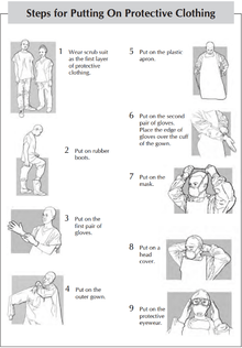 There are specific recommendation regarding the putting on of protective clothing including:[1]