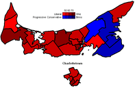 | Map of PEI's ridings coloured in based on how they voted | |||||||||||||||||||||||||||||||||||||||||||||||