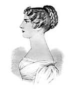 As she became older, she was given a Lutheran governess, Frau von Bielfeld; her daughter Lisette was three years older, and served as a companion to Louise. Lisette got her interested in romantic novels long before many other girls her age. Bielfeld was highly educated, but died after only five years, in October 1782.[4] Despite Frau von Bielfeld's attention to education, Louise's studies were much neglected, and she forgot much of what had been taught her.[3] As a consequence, Bielfeld left shortly before she died, and was replaced with her approval by a new thirty-year-old governess from the countryside, Fraulein von Keller; Louise and Keller soon formed a strong attachment.[3] Previously, Bielfeld had found it easier to complete Louise's schoolwork and show it to her parents, thus ending in little real improvement and understanding on Louise's part. Keller on the other hand was less educated and in need of instruction, consequently imbuing in Louise a taste for study.[5]