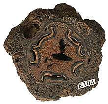 | A transverse section through a Psaronius stem. ~12cm across. | |