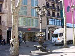 - Font de Canaletes (1892), by Pere Falqués, Rambla amb la Plaça de Catalunya.