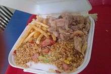 Puerto Rican Chinese cuisine is a popular style of food exclusive to restaurants in Puerto Rico developed by its Chinese immigrants. The food is a variation of Cantonese cuisine with some elements of Puerto Rican cuisine. A typical dish consists of fried rice, a choice of meat, and French fries. The fried rice itself varies in every restaurant, but can contain many ingredients such as ham, beef, shrimp, egg, lettuce, and onions.