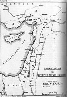 Lieutenant General E. S. Bulfin, commander of the XXI Corps, established his headquarters in the city's main hotel, to oversea devolution of the city's administration to the French following the terms of the Sykes–Picot Agreement. He appointed Colonel de Piépape, commander of the infantry Détachment Français de Palestine et de Syrie, military governor at Beirut. He also appointed French military governors to Sidon and Tyre. When detachments of French troops arrived from Haifa by sea to garrison the three towns, they found some unrest caused by disappointed Arab Sherifial representatives.[16][25] The infantry Détachment Français de Palestine et de Syrie arrived at Beirut on 20 October, and the cavalry Regiment Mixte de Marche de Palestine et Syrie, detached from the 5th Light Horse Brigade, arrived on 24 October. The 54th (East Anglian) Division arrived at Beirut on 31 October 1918.[26]