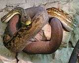 Python, from the Greek word (πύθων/πύθωνας), is a genus of nonvenomous pythons[2] found in Africa and Asia. Until recently, seven extant species were recognised;[2] however, three subspecies have been promoted and a new species recognised. A member of this genus, P. reticulatus, is among the longest snake species and extant reptiles in the world.