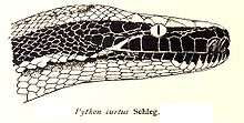The arrangement of labial scales identify this illustration as Python brongersmai.