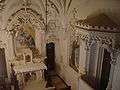 Stuccoes above the main entrance.- The interior of the chapel.