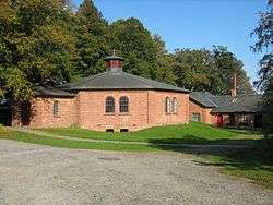 The octagonal building known as the forsamlingshus was built in 1868 for the popular Wednesday evening lectures at the school. They were so popular that there was not enough room in any of the classrooms. One of very few such buildings in Denmark, it is now a listed building.[5]