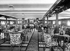 It was widely admired, and was another example of the type of furnishing that subsequently had to vanish. Before the ship had finished her service life, the staircase was in contravention of modern fire regulations.